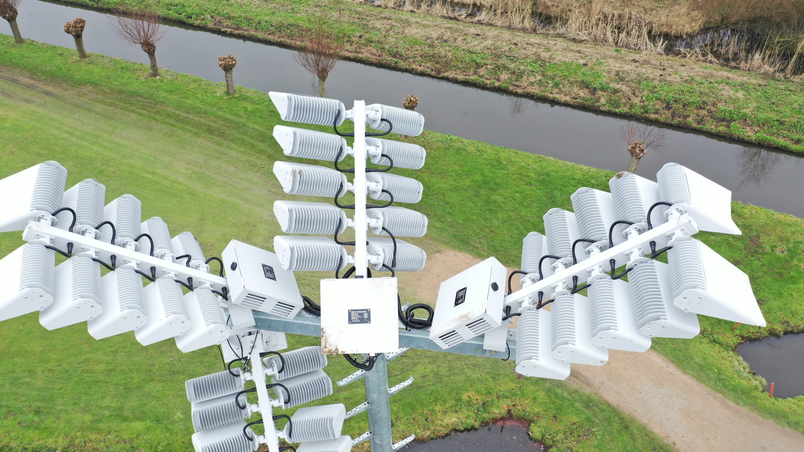 Op elke hoek van het veld vind je een lichtmast. Een lichtmast bestaat vaak uit meerdere lampen. Dit is afhankelijk van de wensen van je club en wat er nodig is om het gehele speelveld te verlichting.